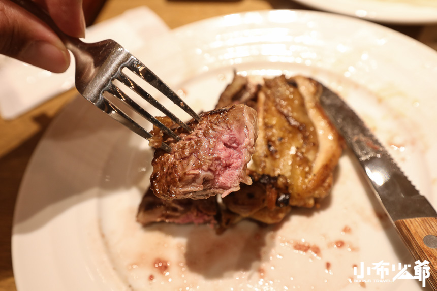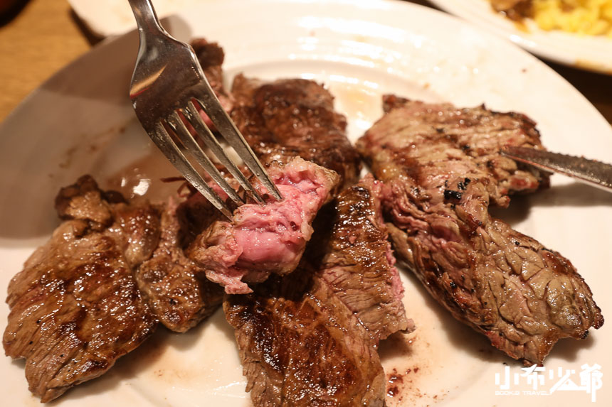 逛完了第一輪沙拉吧,肉品也差不多好了,這一輪就有四種肉,安格斯里肌牛排、橫膈部位牛排、里肌牛排、雞排,份量都不多,所以建議可以先吃上一輪再挑選想吃的肉