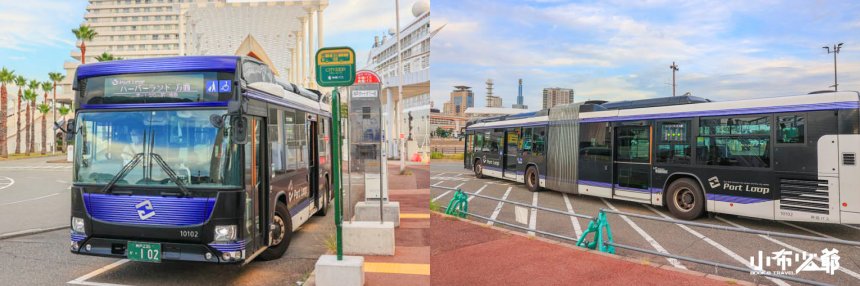 Port Loop是較現代的雙節公車,這兩台公車的站點都跟一般的公車站是分開的,部分景點重複,有一次我們從三宮站搭乘,就遇見導航至公車站,但看不到站牌,直到我們往附近尋找,才看到這藍白相間的站牌,在尋找這台車的時候要注意喔!!