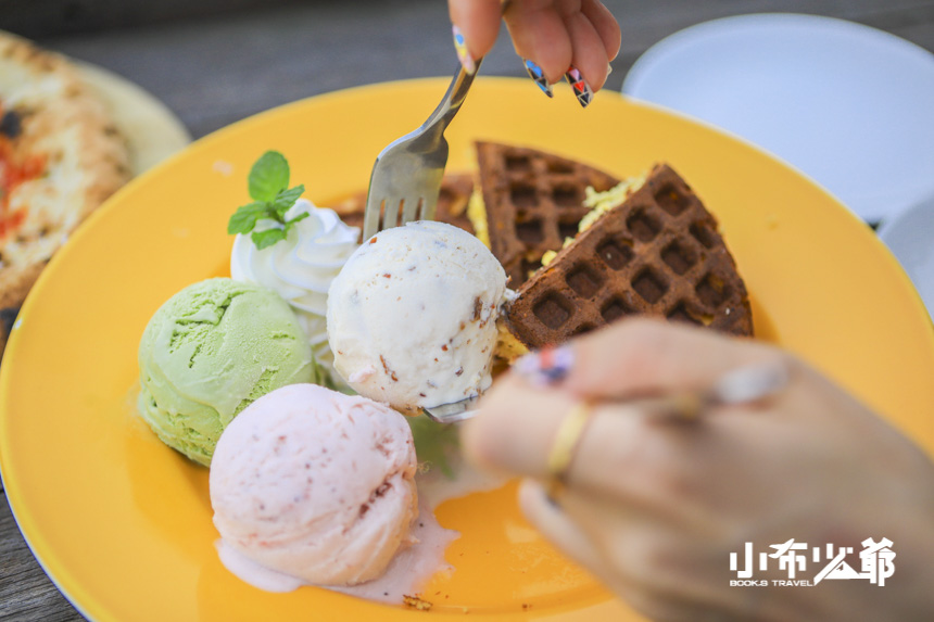 - 招牌為披薩跟冰淇淋鬆餅,店家最推的櫻桃鴨賞是在地特色商品,還有冰淇淋鬆餅
