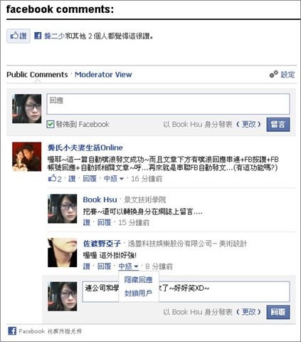 ▲還可以隱藏回應和封鎖用戶XD