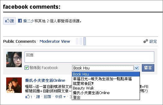 ▲除了可以按讚之外,還可以切換身分在網誌上用FB帳號留言和推文分享!