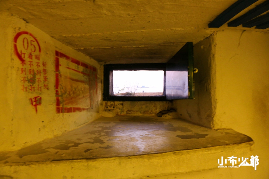 碉堡內部可以看見擺放機槍用的窗口,旁邊還有射擊口號。