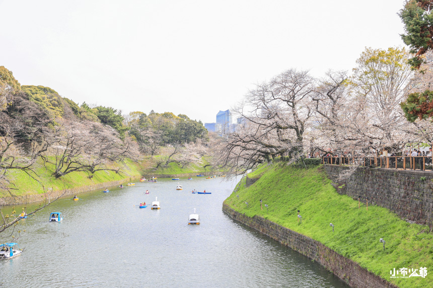 橋上遠眺:划船的這塊區域,就是千鳥之淵來訪最經典的拍照景點,可以俯瞰整條櫻花河。