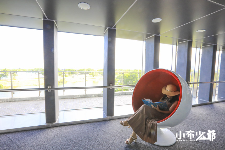 圖書館有一到五樓,藏書豐富,而室內的設計相當富有現代感,白天的時候不需開上太多燈光,便也可保持明亮,最大面的那扇落地窗,就有足足三層樓高,面對鏡心湖畔,相當的美阿