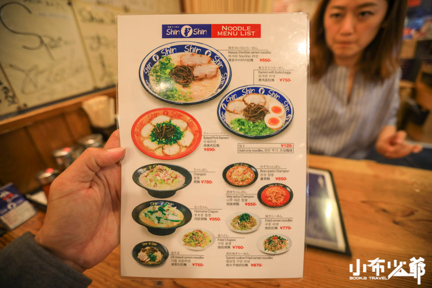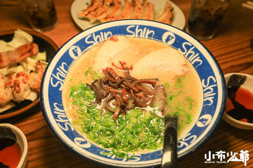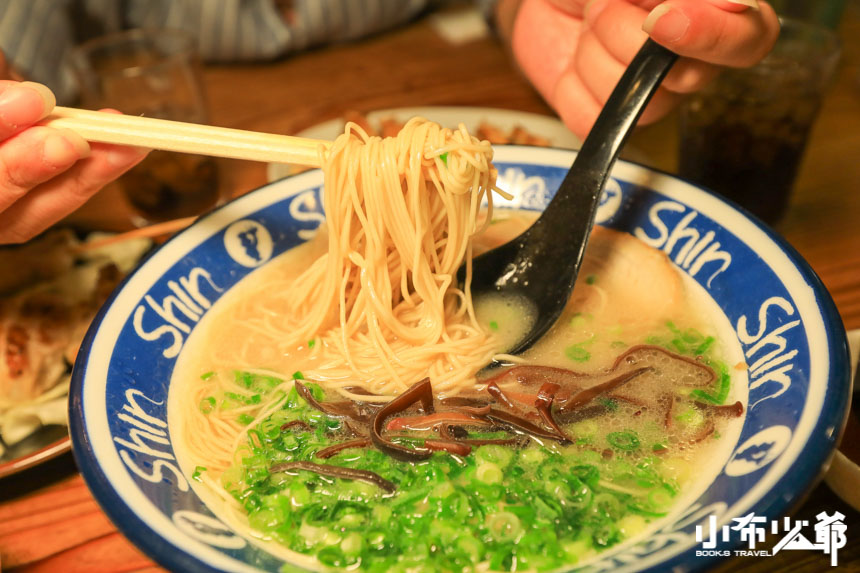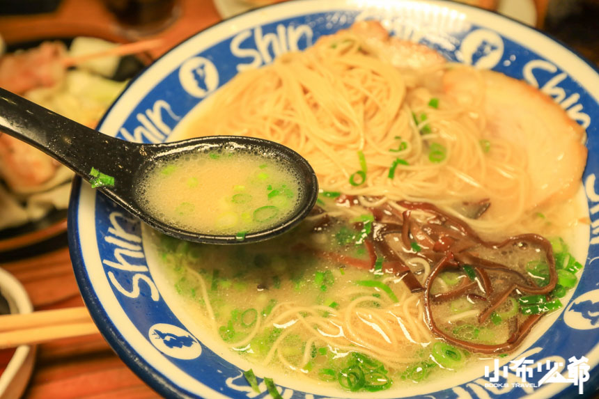我們點的是最基本款的博多shinshinらーめん,跟一蘭比起來稍油了一些,但是豚骨香也更明顯了,叉燒超級軟嫩,龔少跟小布覺得最特別的是他們家的拉麵,跟台灣的壽麵有異曲同工之妙,細細的不會軟爛,很容易入口