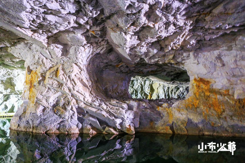 跟九宮坑道不同的是,翟山坑道裡面的水非常清澈,絕大部分都可以看見坑底,坑道的光線催然幽暗,但也足夠順利步行。