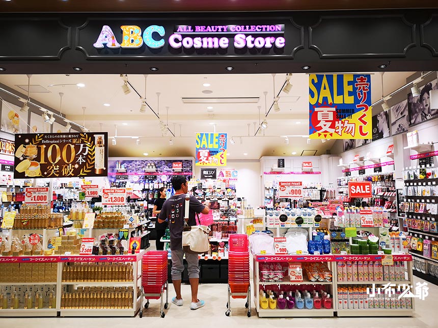 藥妝品牌有ABCコスメストア和ココカラファイン,ココカラファイン比較大間且有藥品,而這間ABC是比較偏日韓系的,還滿多韓系彩妝。