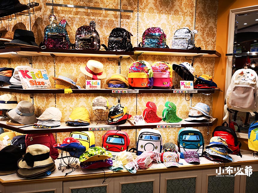 雖然說這是一間帽子店,但是她的包包比帽子更加吸引人,小恐龍跟兔子後背包也太可愛了吧!