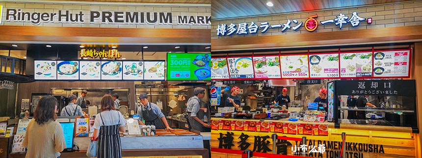 美食街有餐廳與店舖形式,都是九州特產或是日本一些連鎖店面。