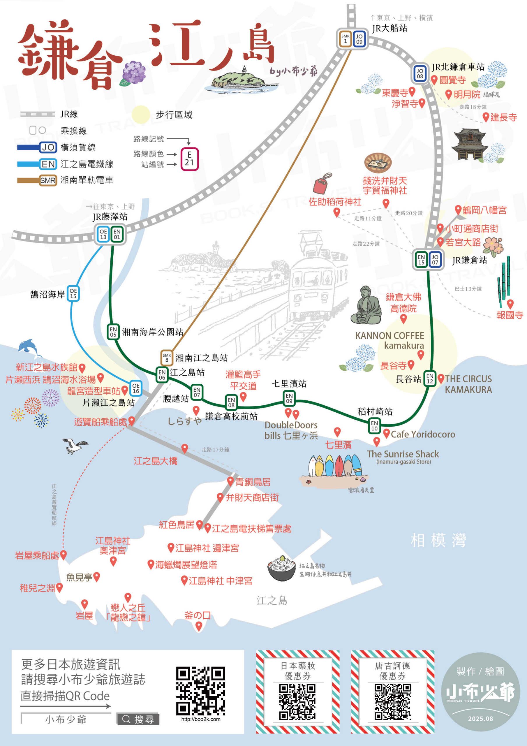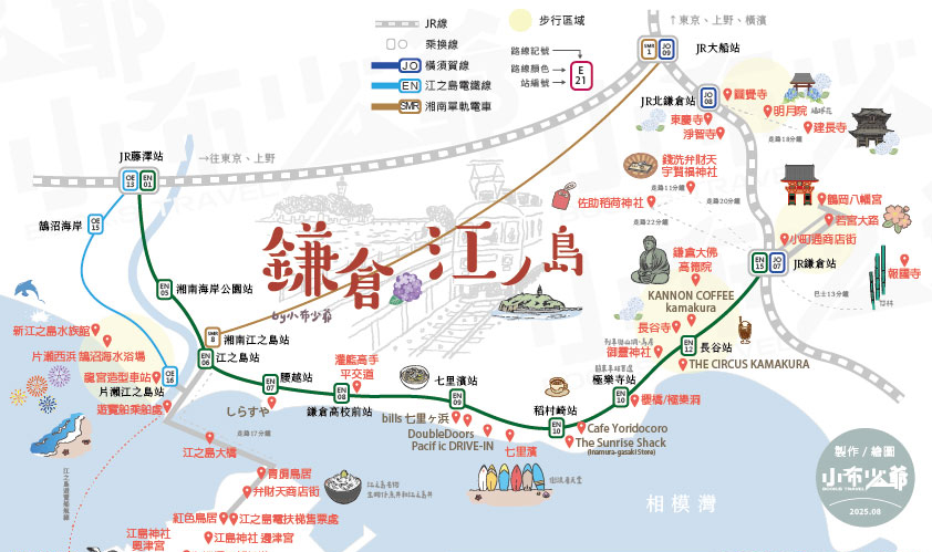 龔少把景點依照江之電的站名給分類了,這些景點都是10分鐘內可以步行到達的經典景點,看是要從江之島玩到鎌倉或是從鎌倉玩到江之島都沒問題