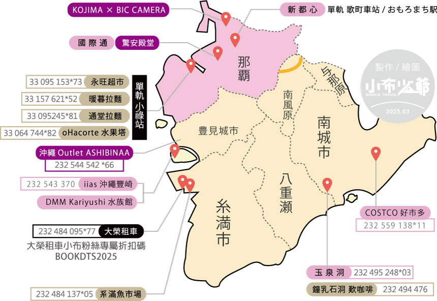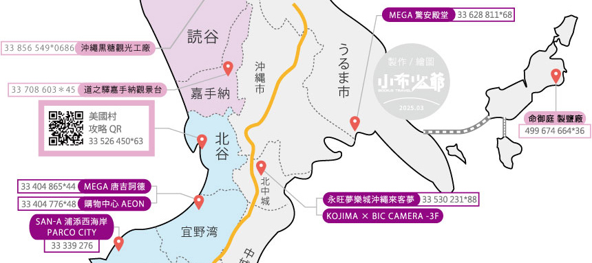 最重要的就是下載小布繪製的沖繩景點地圖,還有全景點map code,隨時可以查詢周邊景點,靈活調整!