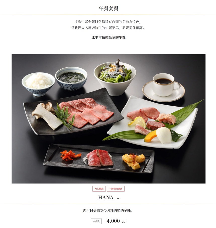 先來看看一般套餐吧,這是我們剛剛看到的菜單。但是建議還不要先急著選,因為他們的午間套餐的選擇看起來似乎更優,而且附近桌的日本人跟韓國人都點定食為主,所以我們決定試試看(菜單價格以官網為主)