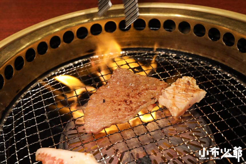 肉一下火爐,立即濺起了火花,和牛的油脂本來就燃點低,遇到溫火藏在肉中的油脂精華便會噗滋噗滋的流出來