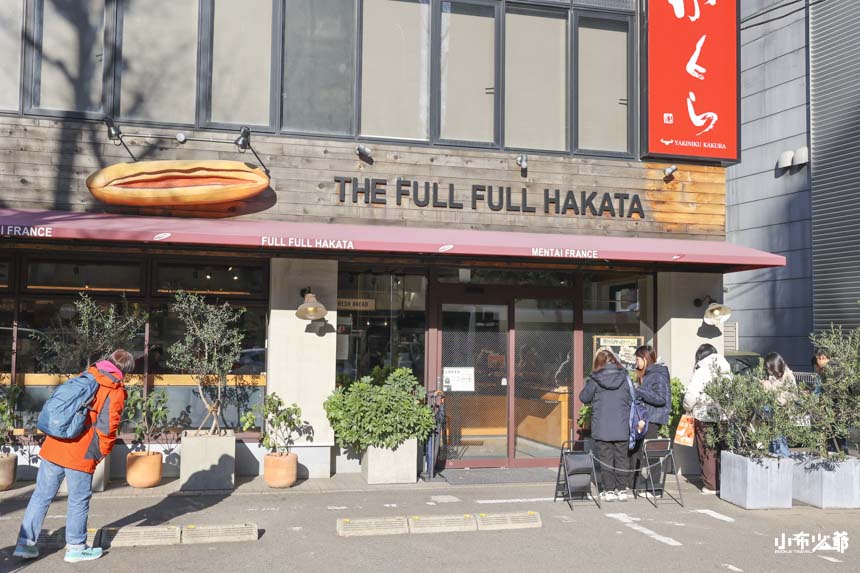 THE FULL FULL HAKATA 是福岡博多很有名的明太法國麵包排隊店,也是很多人來博多時,會特地排進行程裡的一站。才剛接近店門口,就能聞到一陣一陣剛出爐的麵包香,明明知道要排隊,還是會忍不住跟著人潮一起走。這裡生意真的很好,常常一開店就開始排隊,隨便一排都要半小時以上,不過因為現場製作節奏很快,邊等邊聞著香氣,其實也不會覺得太難熬。