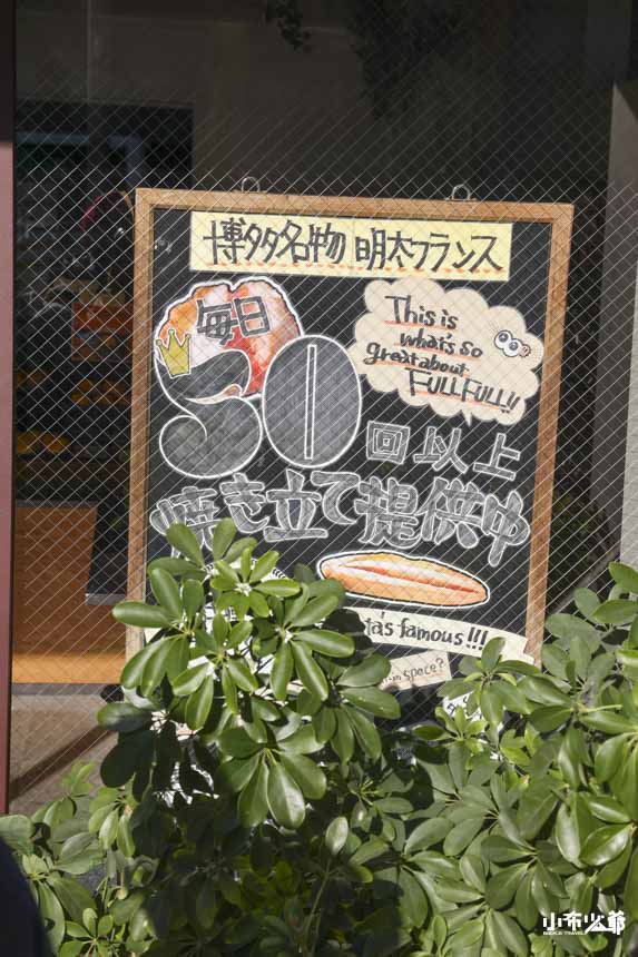 小布覺得,THE FULL FULL HAKATA 最讓人難忘的,還是那一口剛出爐的明太法國。外層烤得酥酥脆脆,裡頭卻還保有麵包本身的彈性,咬下去時還帶著熱氣,明太子的香味會慢慢在嘴裡散開,越吃越覺得迷人。那種坐在店裡,拿著熱呼呼的麵包邊吃,邊感受博多街道氣氛的畫面,是旅行裡的小小確幸。因為得來不易,後來多買幾份放到隔天當早餐,也依然很好吃。