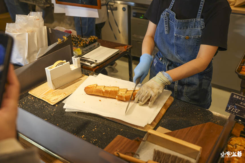 而讓它人氣越來越高的原因,除了麵包本身真的好吃之外,還有一個很貼心的小細節,就是店家會幫忙把法國麵包切成比較好拿、也更方便食用的段落。對旅人來說,不用自己拆、不用怕明太子醬不好入口,拿到手就能直接享用,也讓這款明太子法國麵包變得更美味,難怪會一路累積出這麼高的人氣。